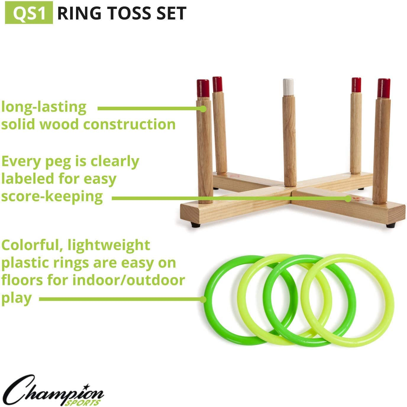 Champion Sports QS1 Wooden Ring Toss Set,Classic
