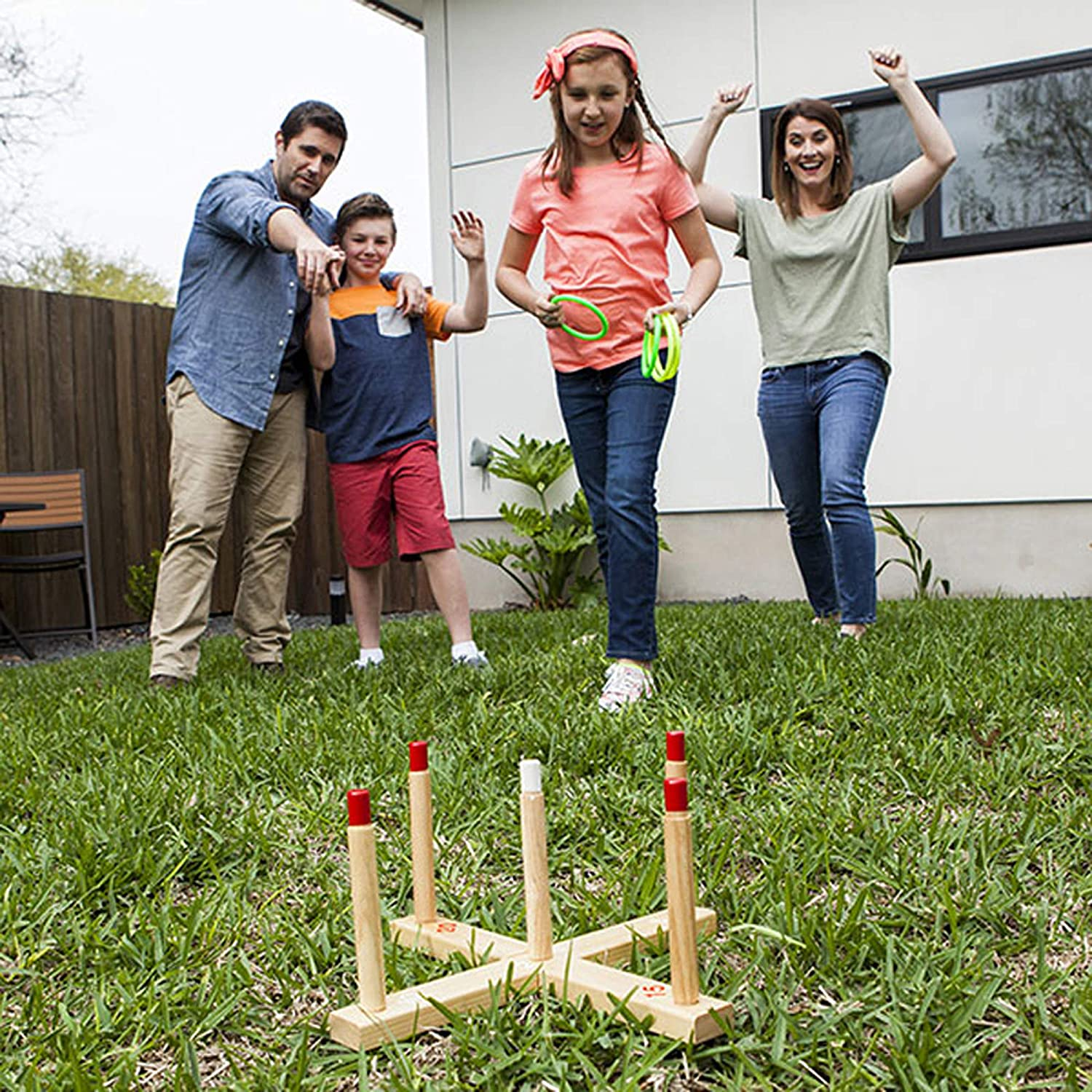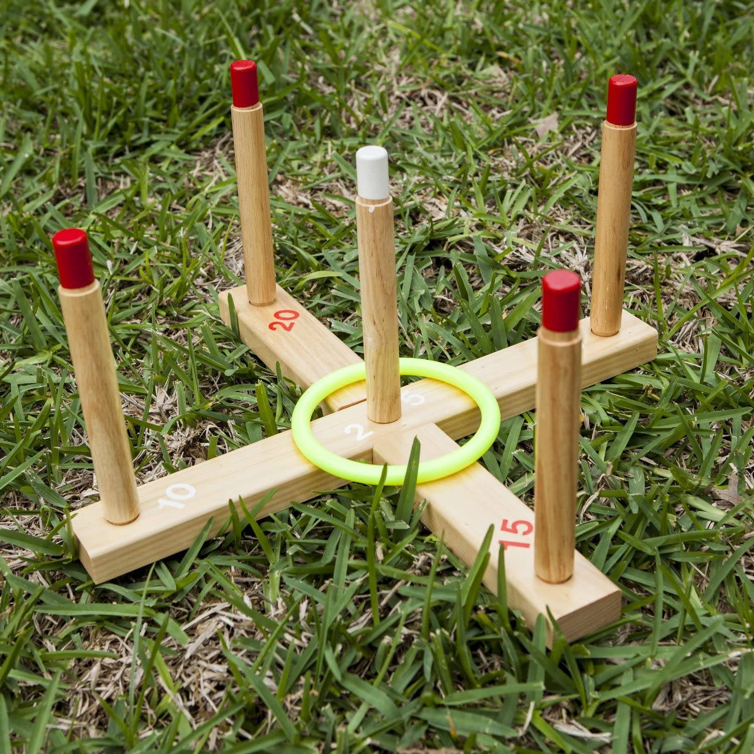 • DURABLE WOODEN CONSTRUCTION: Designed for ultimate durability, this long lasting ring toss set is made from solid wood, ensuring it will withstand regular outdoor use on camping trips, during backyard barbecues or on the playground