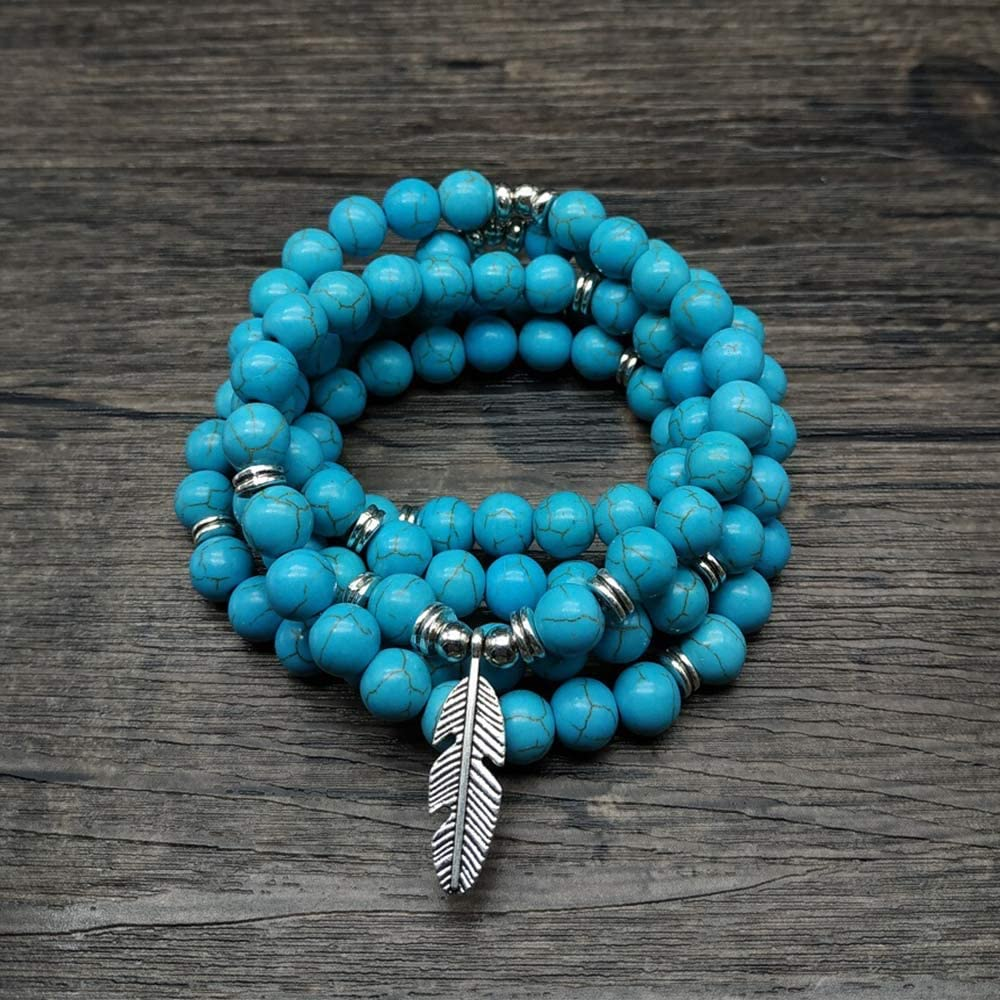 ❁ 100% HANDMADE ITEMS: A gorgeous japa mala 108 beads wrist wrap bracelet /necklace is processed with natural healing stone beads and carefully manned with a leaf charm and accessories.